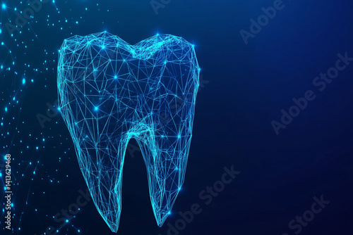 Wall mural tooth sign abstract low poly wireframe style. abstract geometric background. wireframe light structu
