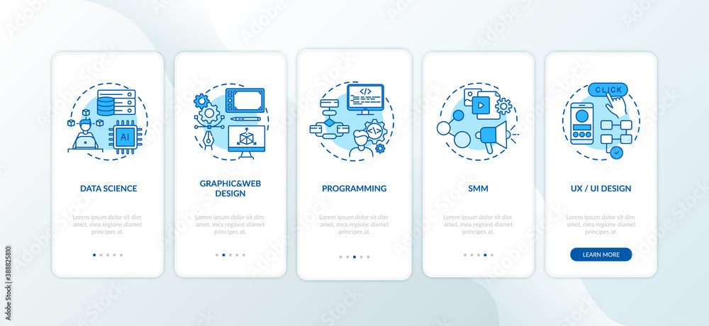 Top careers in it for creative thinkers onboarding mobile app page screen with concepts - graphic webWall mural