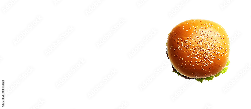 The watermark will not be included on Wall mural.: Top down perspective photograph of a hamburger bun on a white backdrop with available space for addi