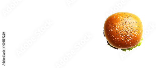 Top down perspective photograph of a hamburger bun on a white backdrop with available space for addiWall mural
