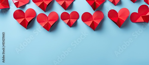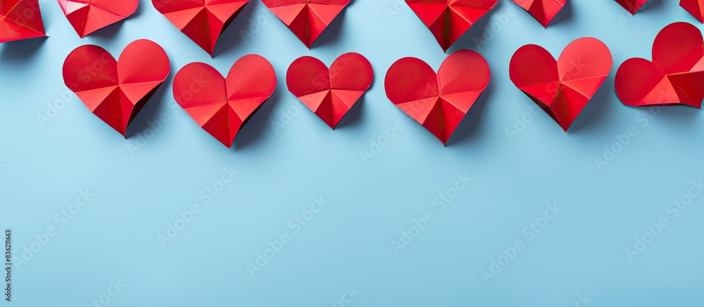 The watermark will not be included on Wall mural.: Top down view featuring two red origami hearts set on a white background specifically designed for v