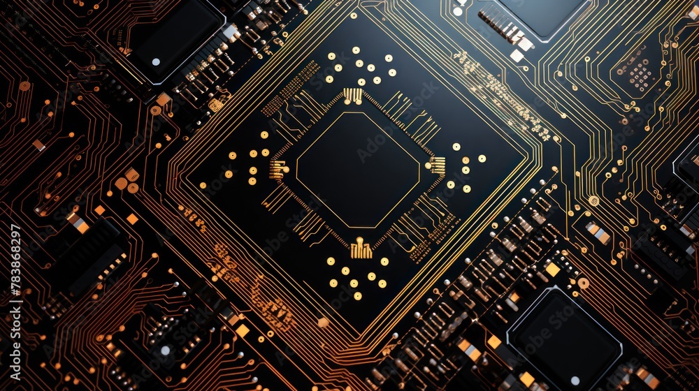 Wall mural top-down view. modern technology circuit board texture background design. - Wall murals Wall mural top-down view. modern technology circuit board texture background design. - Wall murals