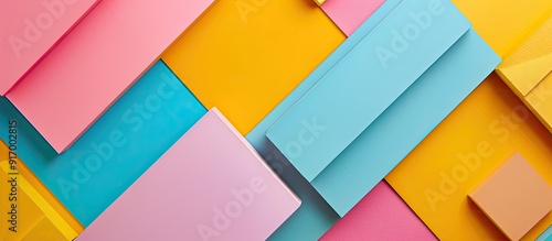 The watermark will not be included on Wall mural.: Top view and flat lay of an abstract geometric background with vibrant colors ideal for showcasing p