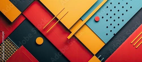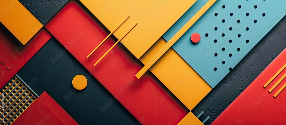 The watermark will not be included on Wall mural.: Top view flat lay of colorful abstract geometric design perfect for copy space image