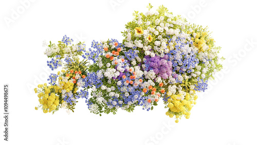 Wall mural top view group of evergreen colorful flowers and grass field in nature with isolated on transparent  - Wall murals Wall mural top view group of evergreen colorful flowers and grass field in nature with isolated on transparent - Wall murals