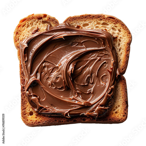 The watermark will not be included on Wall mural.: Top view of a square bread slice smeared with chocolate spread isolated on a white transparent backg