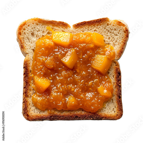 The watermark will not be included on Wall mural.: Top view of a square bread slice smeared with mango chutney isolated on a white transparent backgrou
