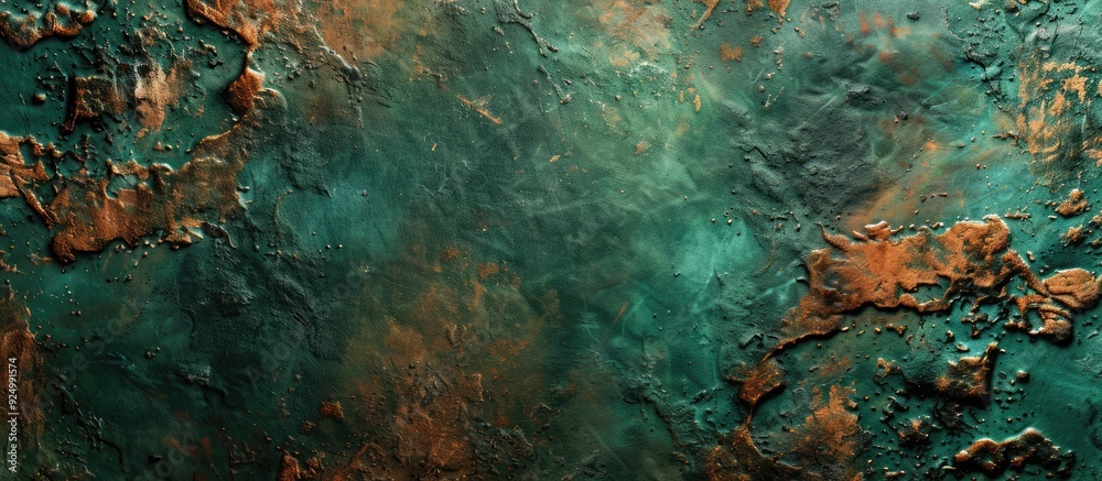 Top view of an abstract background with emerald green and rusty textures ideal for design with a banWall mural