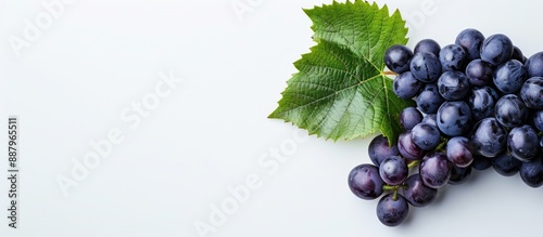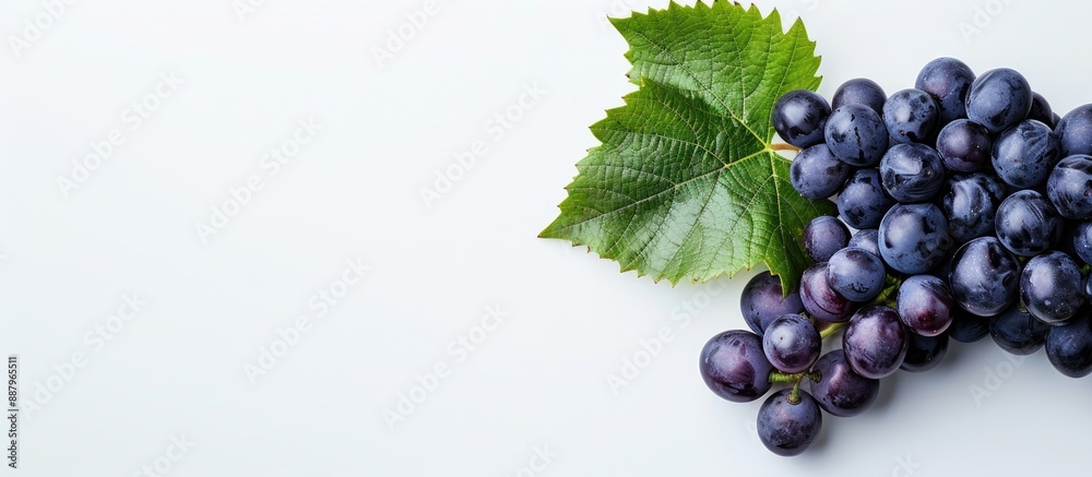 Wall mural : Top view of fresh grapes and a leaf set against a white backdrop with copy space image