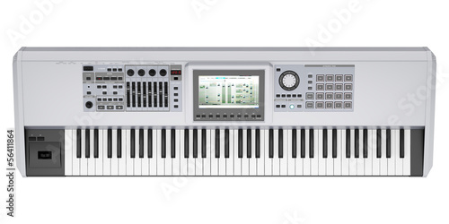 The watermark will not be included on Wall mural.: Top view of gray synthesizer isolated on white background