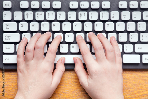 Wall mural top view of hands typing on computer keyboard - Wall murals Wall mural top view of hands typing on computer keyboard - Wall murals