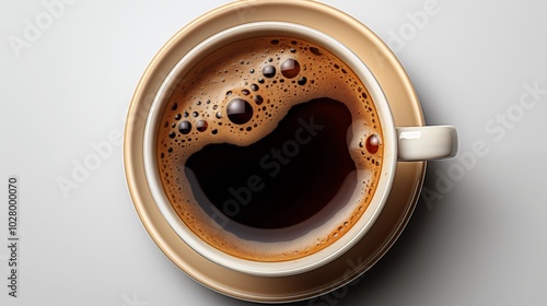 Wall mural top view of isolated mug with hot black coffee with foam on transparent cutout png background. - Wall murals Wall mural top view of isolated mug with hot black coffee with foam on transparent cutout png background. - Wall murals