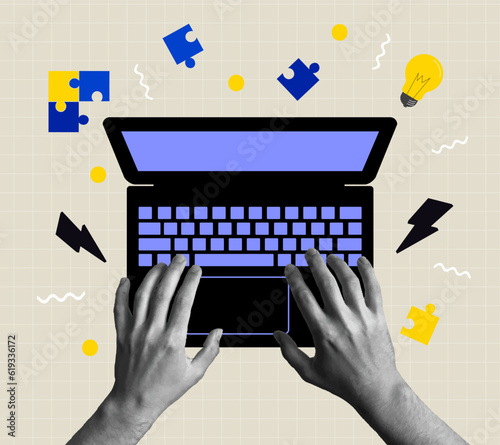 The watermark will not be included on Wall mural.: Top view of man working using computer - vector illustration of website design, development, programm
