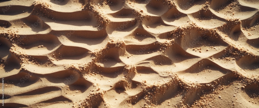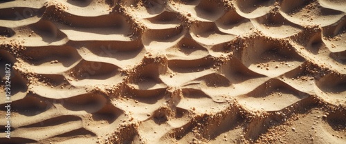 Wall mural : Top view of textured beach sand creating unique patterns in a sunlit summer environment, showcasing
