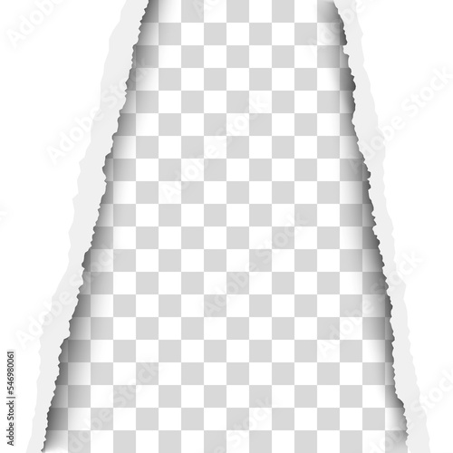 Wall mural torn, snatched vertical window with transparent background in sheet of vector white paper.
