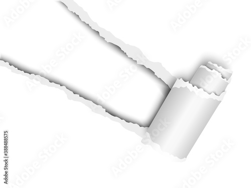 Wall mural torn, snatched window placed diagonally from upper left corner in white paper with paper curl. white