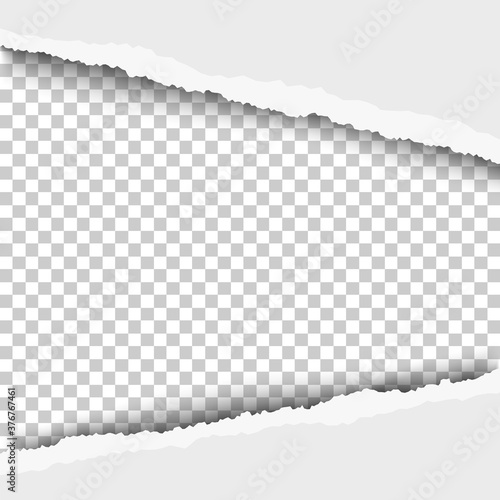 Wall mural torn, snatched window with transparent background in sheet of white paper. vector template paper des