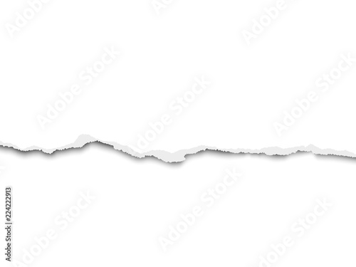 Wall mural torn bottom side of sheet of white paper placed horizontal from left to right. vector paper mockup.
