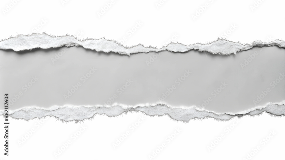 The watermark will not be included on Wall mural.: Torn paper strip revealing gray background design, cut out transparent