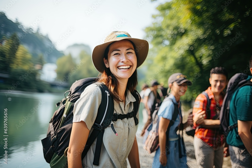 The watermark will not be included on Wall mural.: Tour guides lead travelers on memorable journeys, sharing cultural insights, historical facts, and l