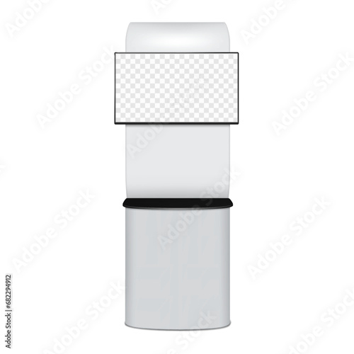 Wall mural : Trade show monitor kiosk with transparent screen vector mock-up - tradeshow media display stand with