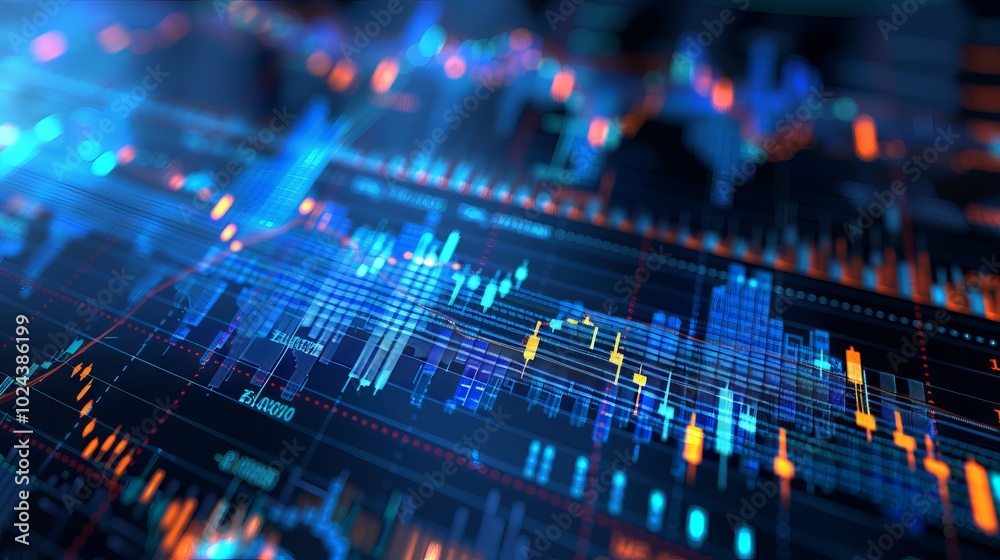 Wall mural trader examining data on interactive digital screen with price graphs, financial indicators, and sto - Wall murals Wall mural trader examining data on interactive digital screen with price graphs, financial indicators, and sto - Wall murals