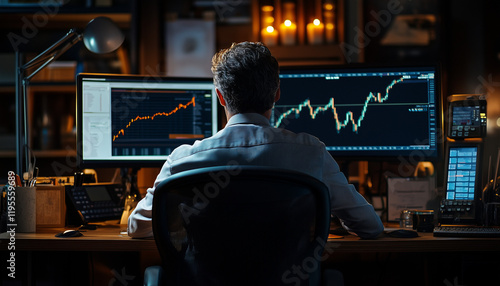 The watermark will not be included on Wall mural.: Trader watching chart of asset that rallies