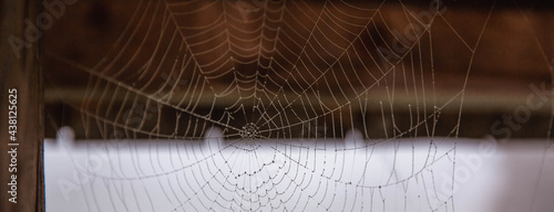 Wall mural traditional concentric spider web on the background of a wooden fence. - Wall murals Wall mural traditional concentric spider web on the background of a wooden fence. - Wall murals