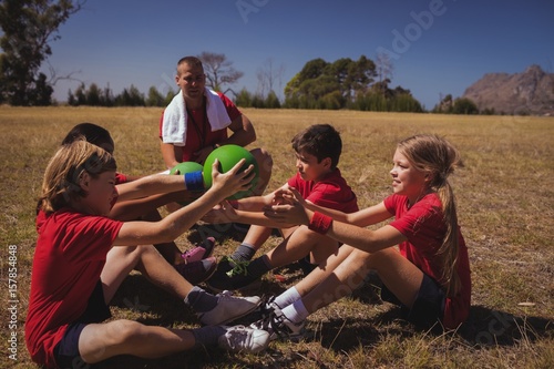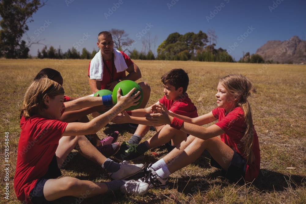 Wall mural : Trainer instructing kids while exercising in the boot camp