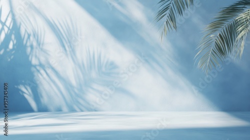 The watermark will not be included on Wall mural.: Tranquil blue background with palm shadows