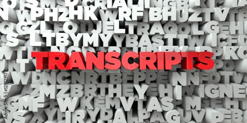 The watermark will not be included on Wall mural.: Transcripts - red text on typography background - 3d rendered royalty free stock image - this image c