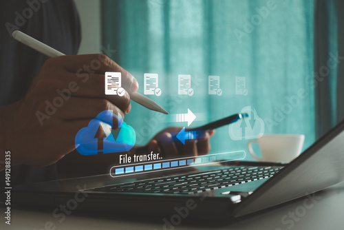 Wall mural transfer files data system relocation on cloud system technology concept, access to backup copy data