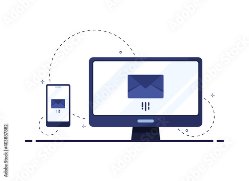 Wall mural transferring data from computer to phone via the internet. sending and receiving letters via email.  - Wall murals Wall mural transferring data from computer to phone via the internet. sending and receiving letters via email. - Wall murals