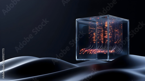 Wall mural transparent cube with glowing circuitry, futuristic and abstract. inside, intricate pathways and glo