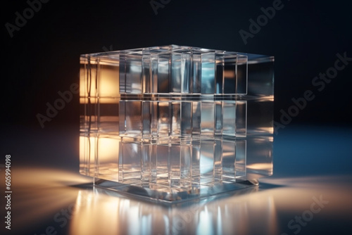 The watermark will not be included on Wall mural.: Transparent glass cube illuminated with light and reflects colorful light - glass cube geometric shap