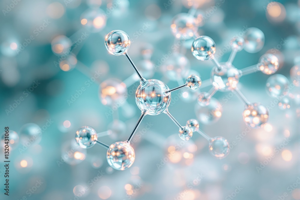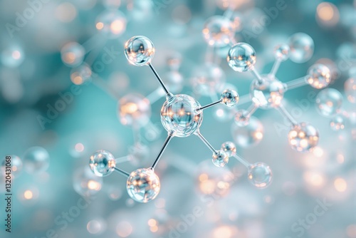 The watermark will not be included on Wall mural.: Transparent molecular structure with glowing nodes on a soft blue background - abstract concept of sc