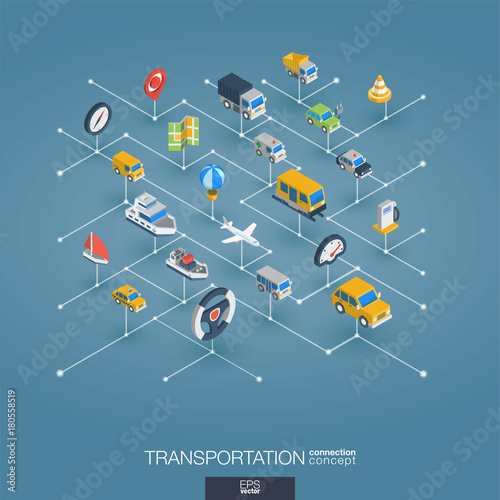 Transportation integrated 3d web icons - digital network isometric interact concept - connected graphiWall mural