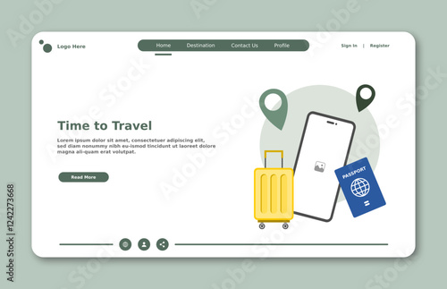 The watermark will not be included on Wall mural.: Travel website landing page - graphical user interface for website page