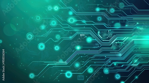 Wall mural : Tree branches morphing into tech circuits, digital interfaces, flat design illustration