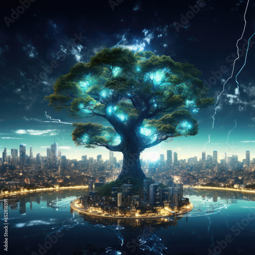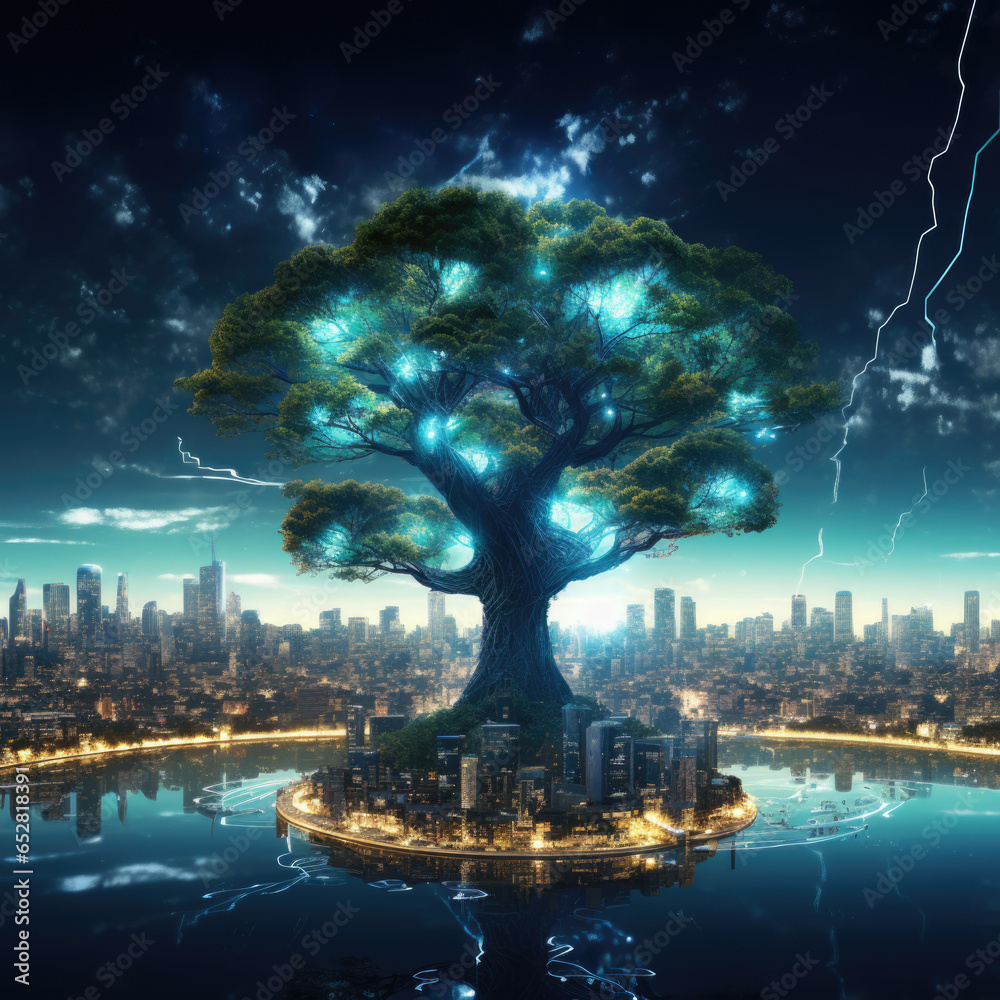 Wall mural tree digital technology big data background. online network cloud storage. business innovation techn - Wall murals Wall mural tree digital technology big data background. online network cloud storage. business innovation techn - Wall murals
