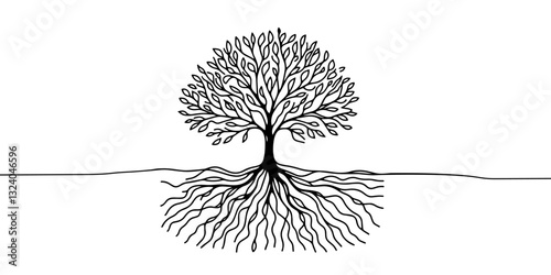 Tree in one line - graphic vector illustration of a continuous line drawing of a tree with rootsWall mural