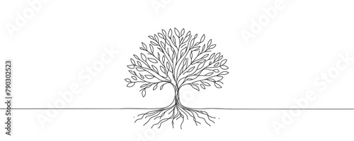 The watermark will not be included on Wall mural.: Tree in one line - graphic vector illustration of a continuous line drawing of a tree with roots