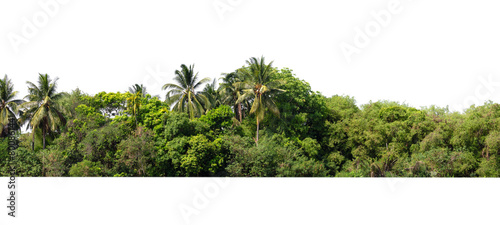 The watermark will not be included on Wall mural.: Tree line lush green forest with palm trees and a white background