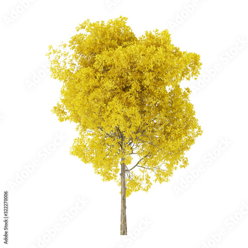 Tree on a white background - tree with yellow foliage - clipping path included - 3d rendering - Wall mural