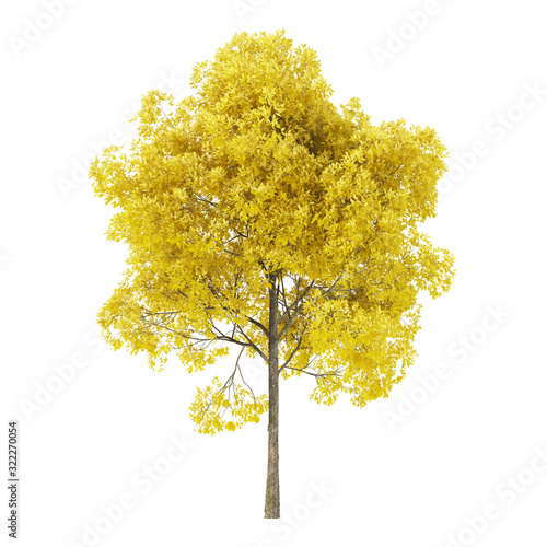 Tree on a white background - tree with yellow foliage - clipping path included - 3d rendering - Wall mural