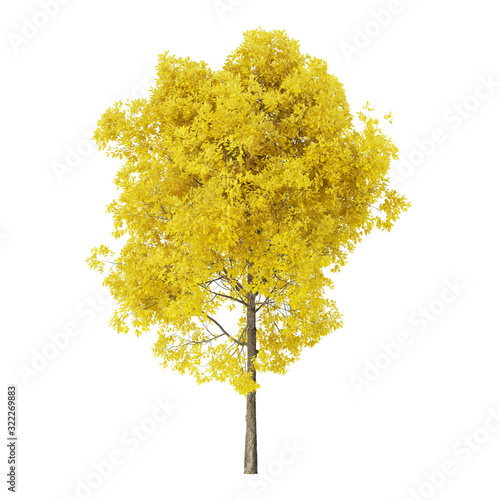 Tree on a white background - tree with yellow foliage - clipping path included - 3d rendering - Wall mural