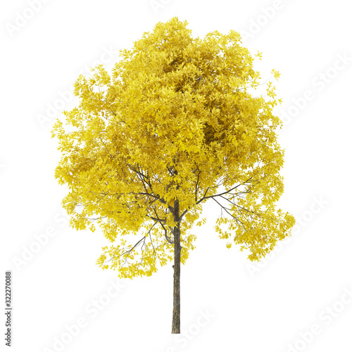 Tree on a white background - tree with yellow foliage - clipping path included - 3d rendering - Wall mural