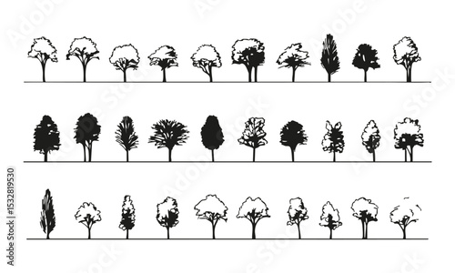 Tree silhouettes collection - landscape architecture and urban design elements set - isolated vector iWall mural