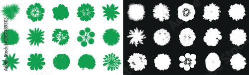 Tree top view silhouette set, perfect for architectural plans and landscape design - includes isolateWall mural