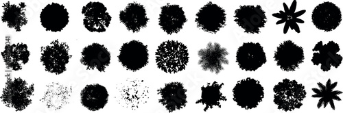 Wall mural tree top view vector set, tree foliage silhouette collection. leaf shapes, detailed isolated natural